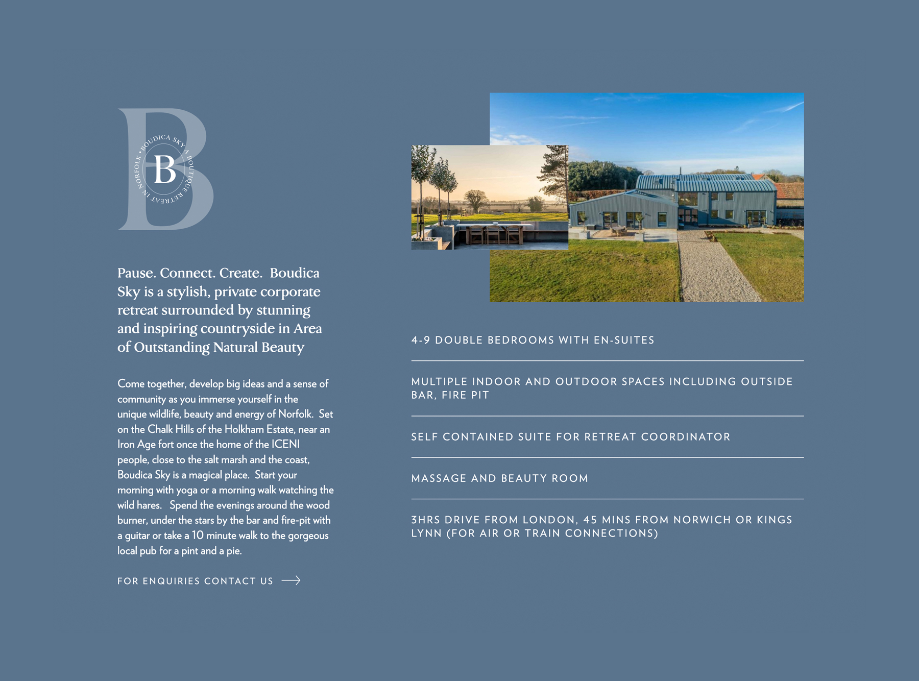 Website and marketing collateral for a corporate retreat in Norfolk. Nature, relaxation and space in the heart of Norfolk.